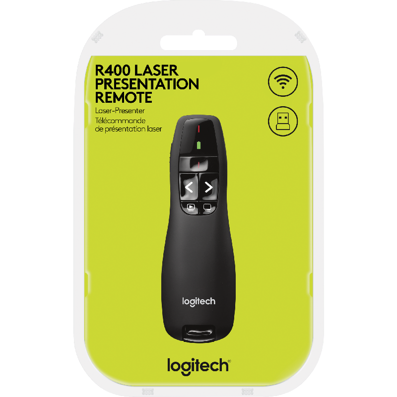 Produktinformationen "Presenter Logitech R400, USB, Laser, schwarz, kabellos"
