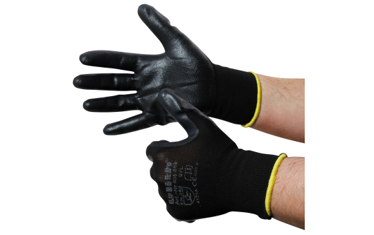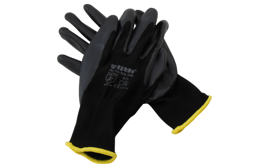 Weiterführende Links zu "Montage-Feinstrickhandschuhe, Größe 8/M, schwarz, 13G-Trägermaterial, Nitril"