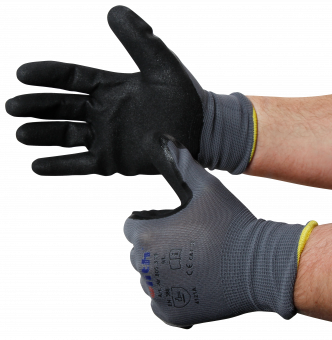 • Montage-Nitril-Feinstrickhandschuhe • graues-13G Trägermaterial • schwarze... mehr