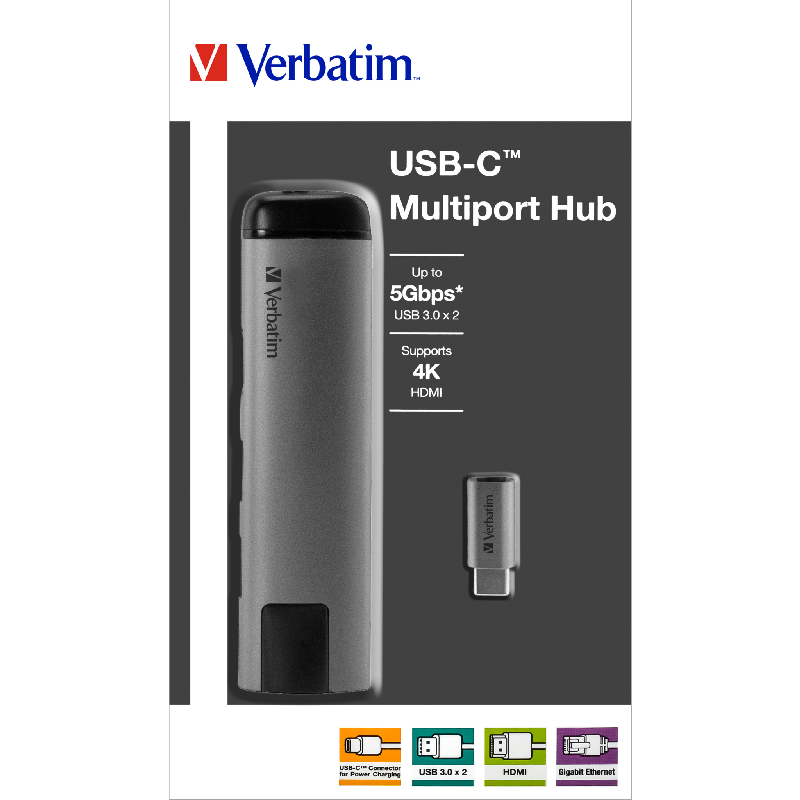 Weiterführende Links zu "USB-C Multiport-Hub von Verbatim, USB 3.0, HDMI, SD, Ethernet, 15cm Kabel"