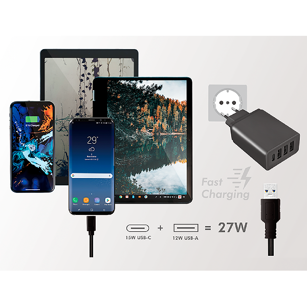 Weiterführende Links zu "USB Ladegerät, 230V Netzteil, 3xUSB-A 5V/3A,1xUSB-C 5V/2,4A, 27W,"