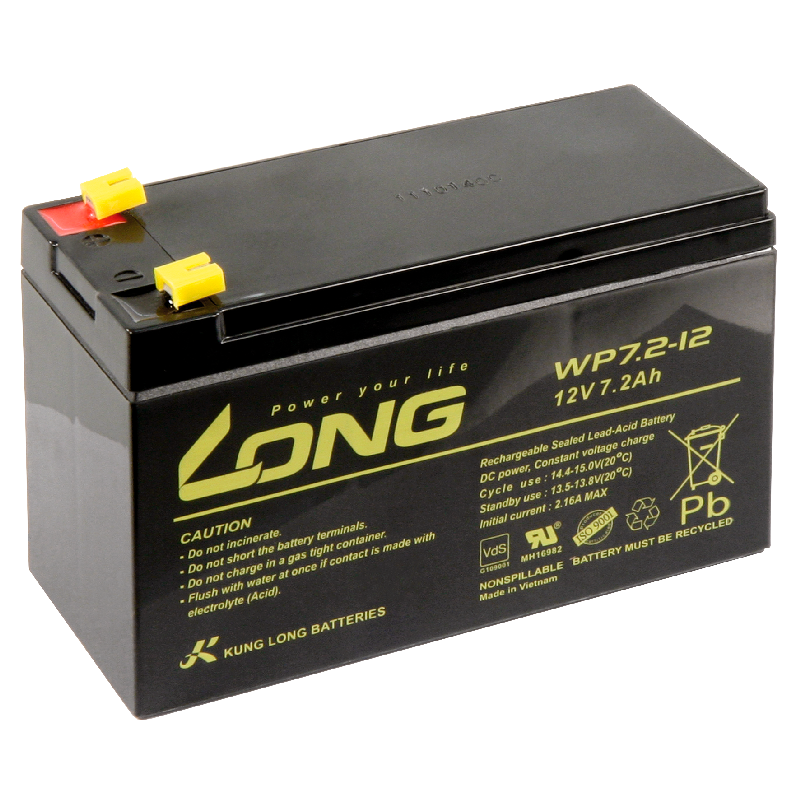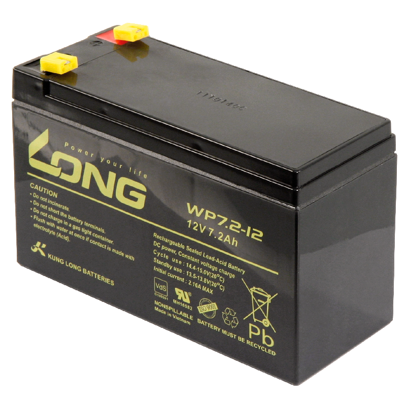 Weiterführende Links zu "Bleiakku KUNG LONG WP7,2-12 12V/7,2Ah, VdS, 151x65x102mm, 2,67kg"