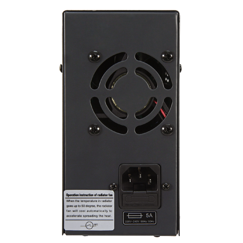 • zwei 3-stellige LCD-Anzeigen mit weißer Hintergrundbeleuchtung für Spannung und Strom