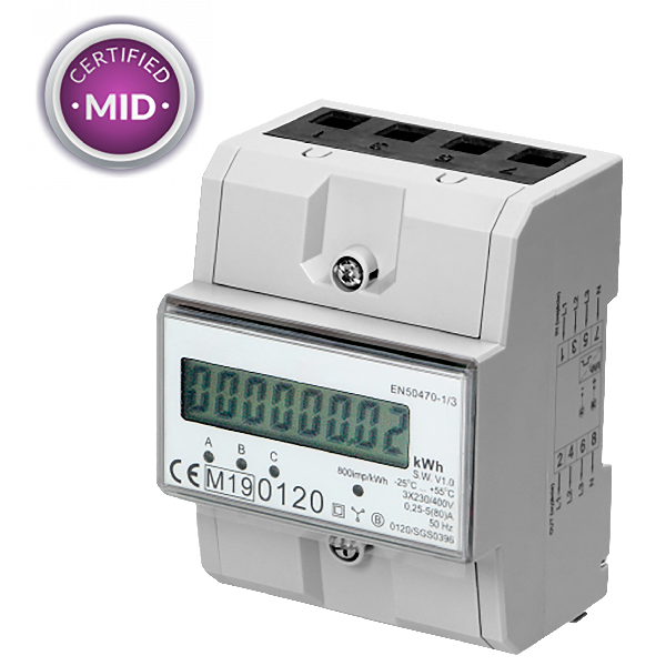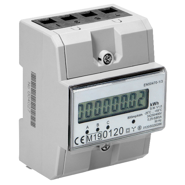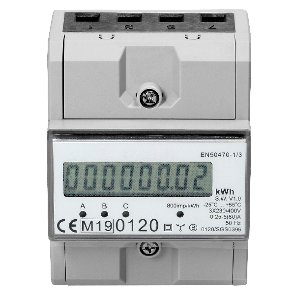 Produktinformationen "3-phasiger Stromzähler, 80A, MID, 3 Module, DIN TH-35mm"