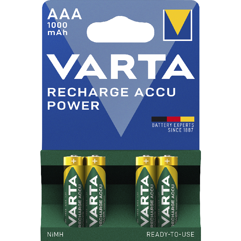 Weiterführende Links zu "Micro-Akku VARTA, Typ AAA, NiMH-Akku, HR03, 1,2V/1000 mAh, Pre-charged, 4er Pack"