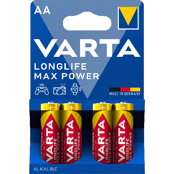 Produktinformationen "Mignon-Batterie VARTA "Longlife Max Power" Alkaline, Typ AA, LR06, 1,5V, 4-Pack"