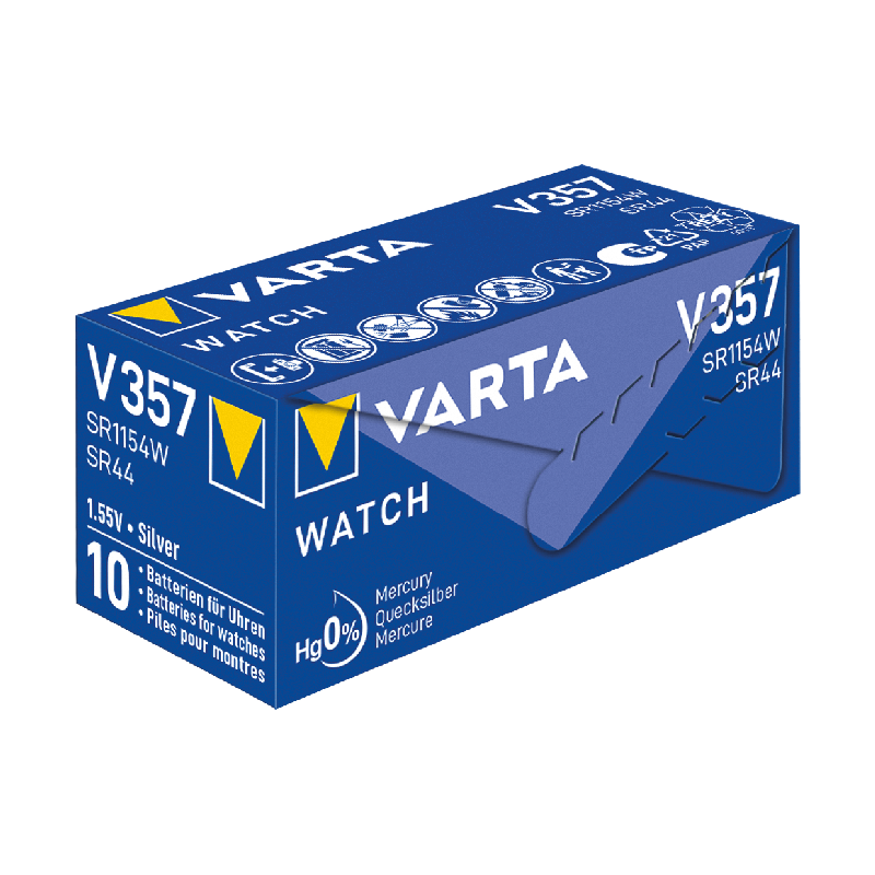 Produktinformationen "Knopfzelle Silberoxid - Uhrenbatterie, VARTA, V357, SR44, 1.55V, Watch, Retail, 10er-Pack"