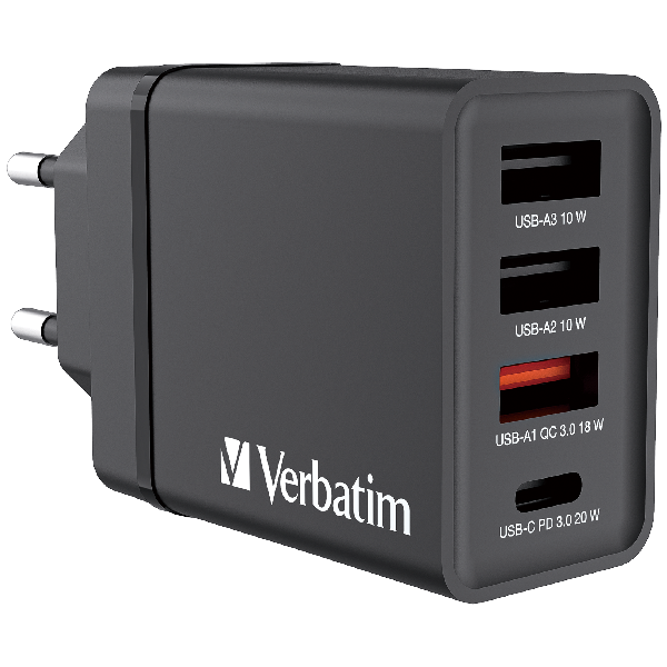 Weiterführende Links zu "Ladeadapter Verbatim "CHR-30EU1", 30W, schwarz, 2xUSB-A, 1xUSB-A QC, 1xUSB-C PD"