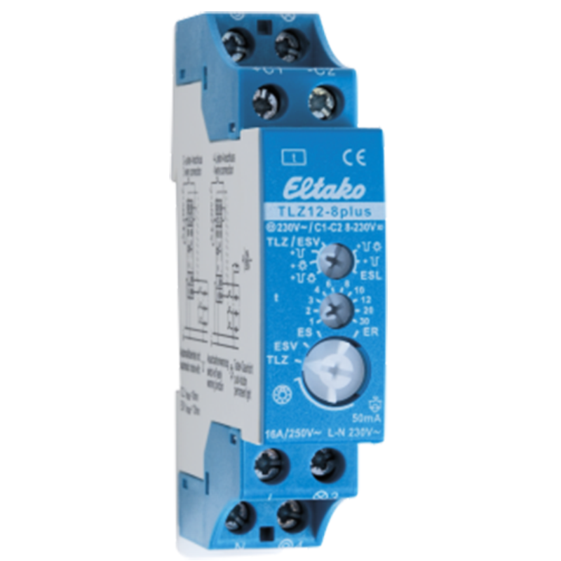Produktinformationen "Treppenlicht-Zeitschalter Eltako TLZ12-8plus, 1 Schließer, 16A/250V AC, blau"
