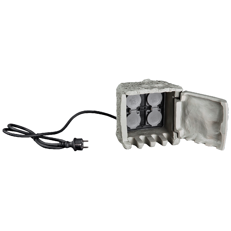 Produktinformationen "Außensteckdose 4-Fach, IP44, stein optik, 190x180x200mm, 3680W, 16A"