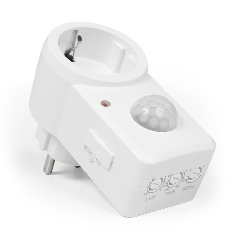 • Bewegungsmelder: AUTO/ON/OFF einstellbar, Maximallast: 1-1.200 Watt, max. 1.200 W (ohmsche Last), max. 800 W (Glühlampen), einstellbare Schaltdauer: 10 Sek. - 15 Min., Dämmerungs-Empfindlichkeit: 3-2.000 Lux, Erfassungswinkel: 120°, Reichweite: 2-9m, 220-240V/AC