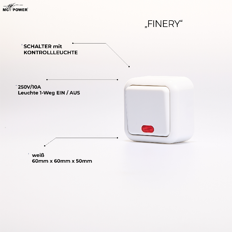 Produktinformationen "Schalter McPower Finery, 250V/10A, AP, weiß, mit Kontrollleuchte"