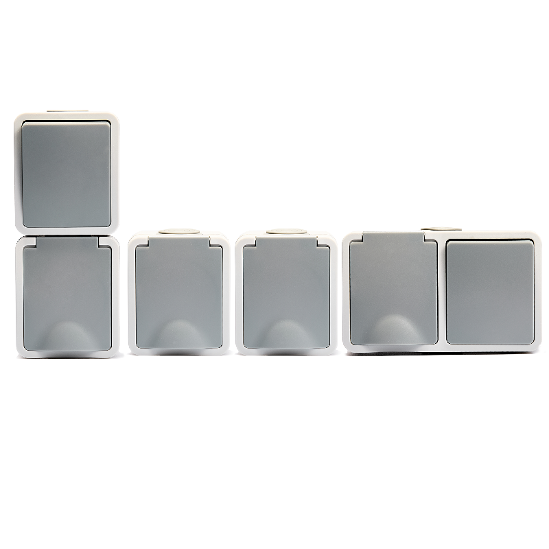 • Feuchtraum Steckdose McPower ''Fix'', Steckanschluss, 250V~/16A, IP54, AP, Farbe: grau, 2 Stück