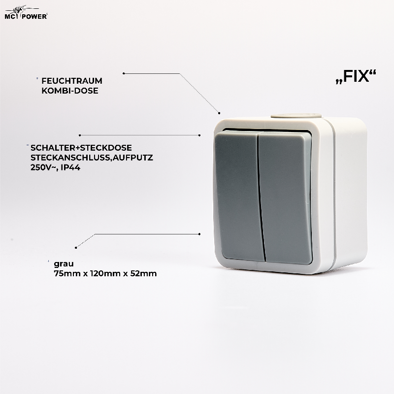 Produktinformationen "Feuchtraum Serienschalter McPower Fix, Steckanschluss , IP54, 250V~/10A, AP"