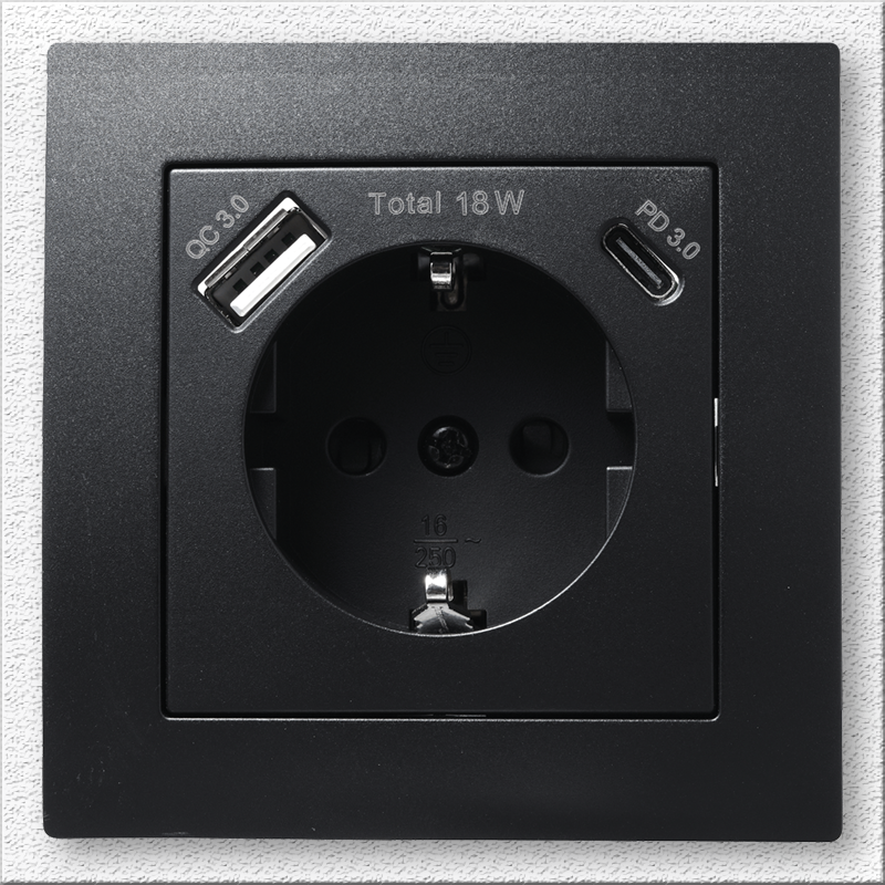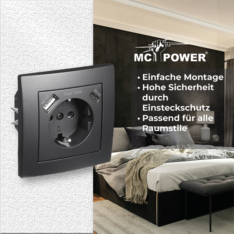 Weiterführende Links zu "Schutzkontakt-Steckdose McPower Flair 1x USB-C 18W PD, 1x USB-A, matt schwarz"
