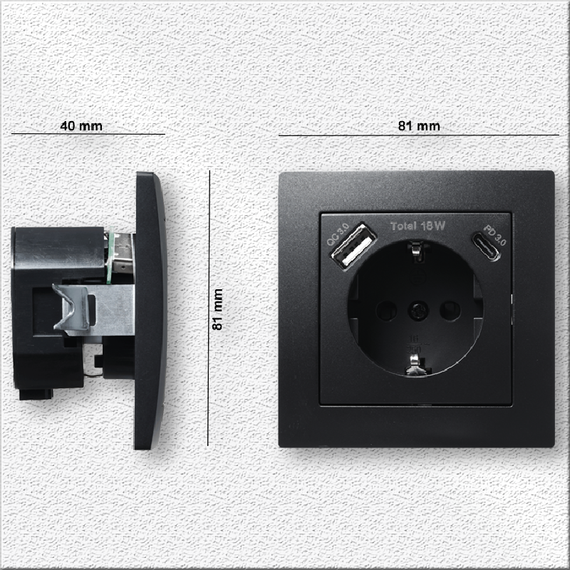 Produktinformationen "Schutzkontakt-Steckdose McPower Flair 1x USB-C 18W PD, 1x USB-A, matt schwarz"