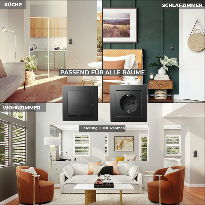 Kundenbewertungen für "Wechselschalter McPower Flair, 250V~/10A, UP, Steckanschluss, matt schwarz"