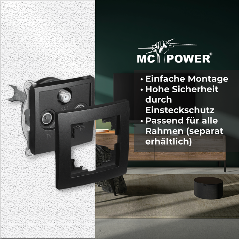 Produktinformationen "Antennendose McPower Flair für TV, Radio und Sat, UP, matt schwarz"