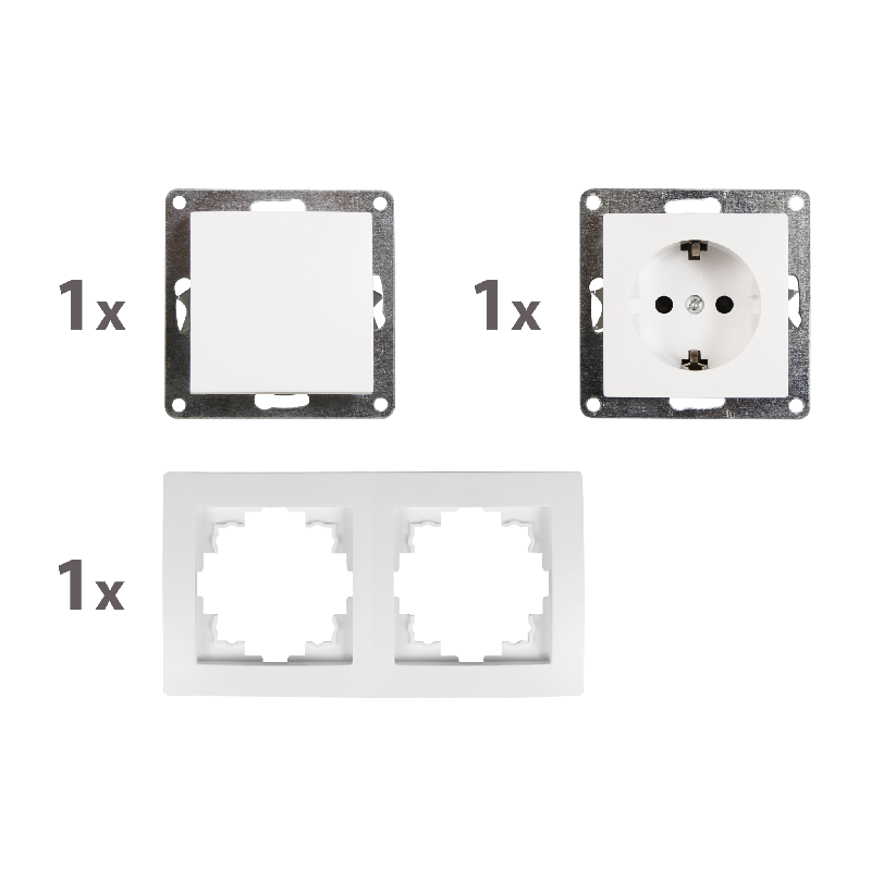 • 1x Steckdose 1534867 • 1x Wechselschalter 1534868 • 1x Rahmen 1fach 1534809