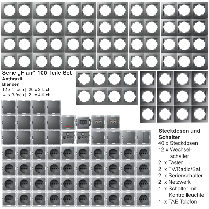 Produktinformationen "Schalter und Steckdosen-Set McPower Flair Komplett, 100-teilig, anthrazit"