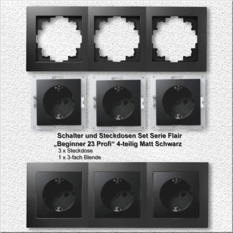 Produktinformationen "Steckdosen Set McPower Flair Beginner 3S Profi, matt schwarz"