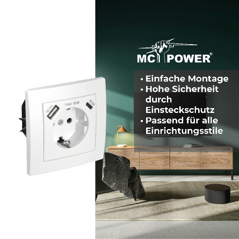 Weiterführende Links zu "Schutzkontakt-Steckdose McPower Flair 1x USB-C 18W PD, 1x USB-A, weiß"