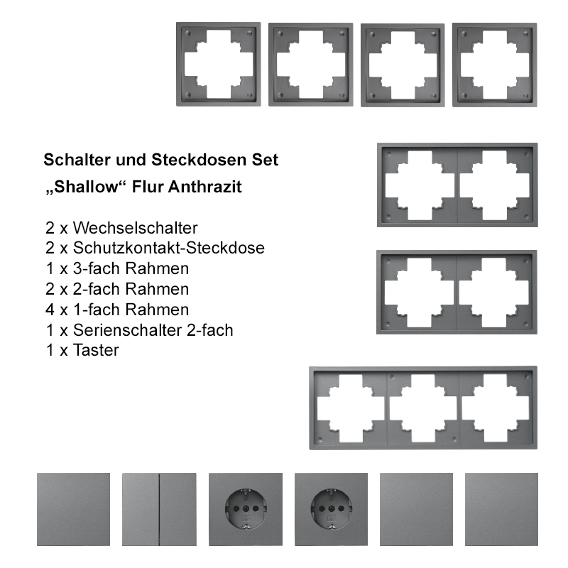 Produktinformationen "Schalter und Steckdosen Set McPower Shallow Flur, 13-teilig, anthrazit"