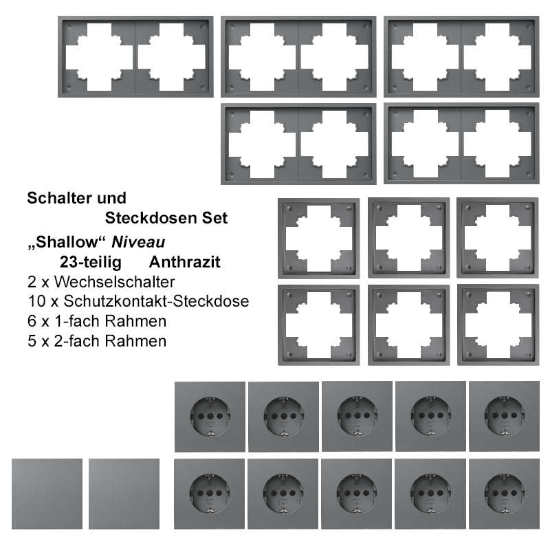 Produktinformationen "Schalter und Steckdosen Set McPower Shallow Niveau 23-teilig, anthrazit"