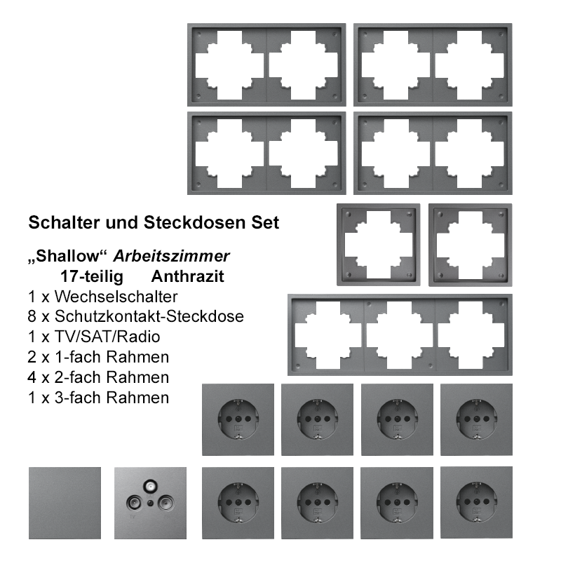Produktinformationen "Schalter und Steckdosen Set McPower Shallow Arbeitszimmer, 17-teilig,anthrazit"