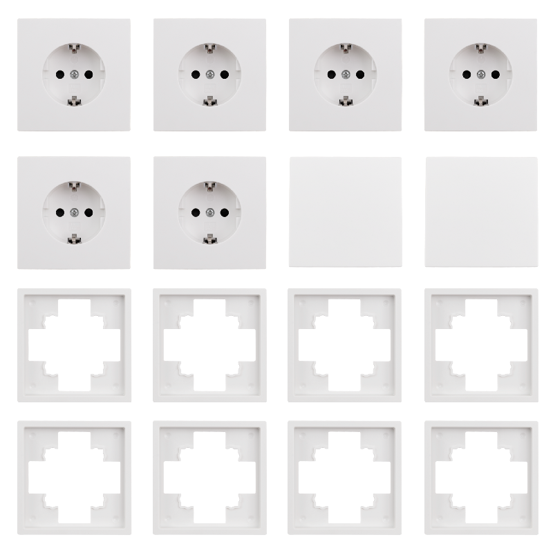 • 2x Wechselschalter • 6x Steckdose • 8x Rahmen 1-fach