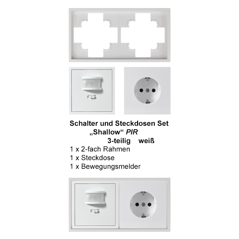Produktinformationen "Schalter und Steckdosen Set McPower Shallow PIR weiß, 3-teilig"