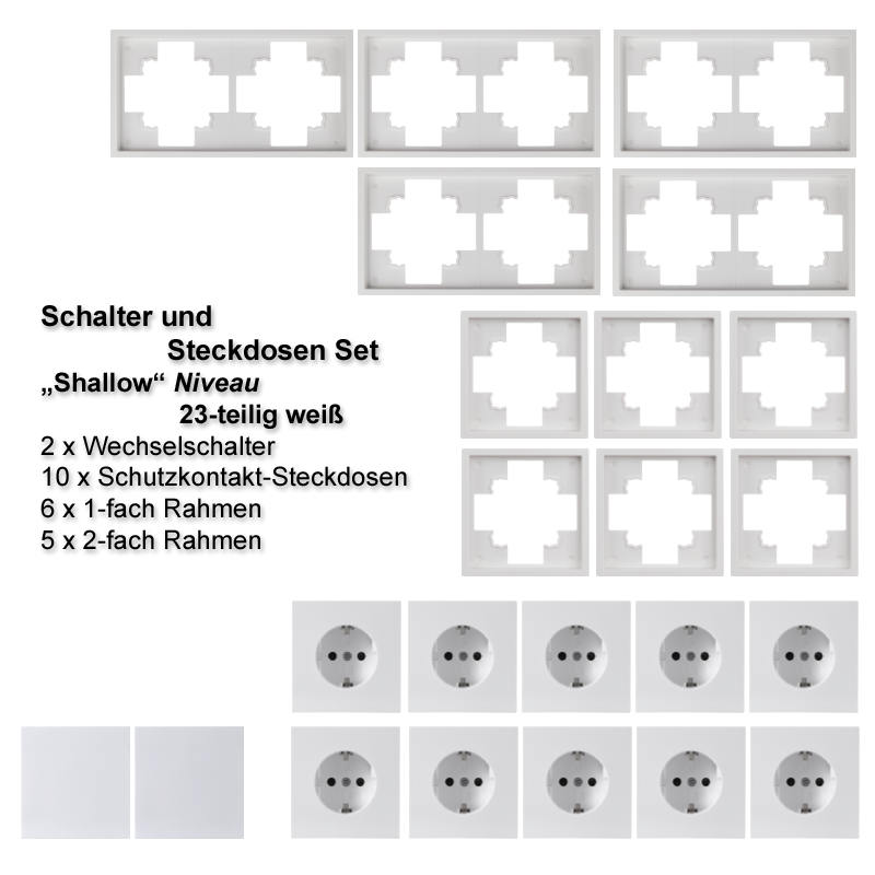 Weiterführende Links zu "Schalter und Steckdosen Set McPower Shallow Niveau, 23-teilig, weiß"
