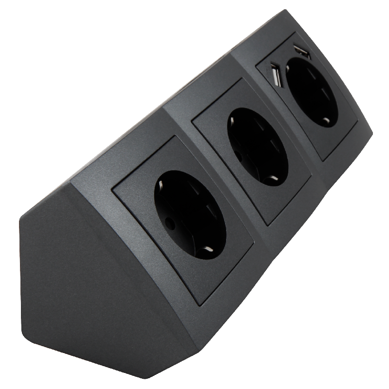 Produktinformationen "Steckdosenblock McPower Flair Aufbau, anthrazit, 3-fach Schutzkontakt + USB"