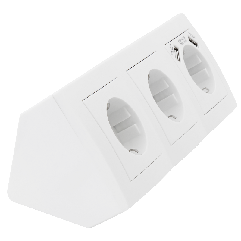 • eine Steckdosen mit Einsteckschutz / Shutter - 230V / 50Hz + 2x USB 2,1A
