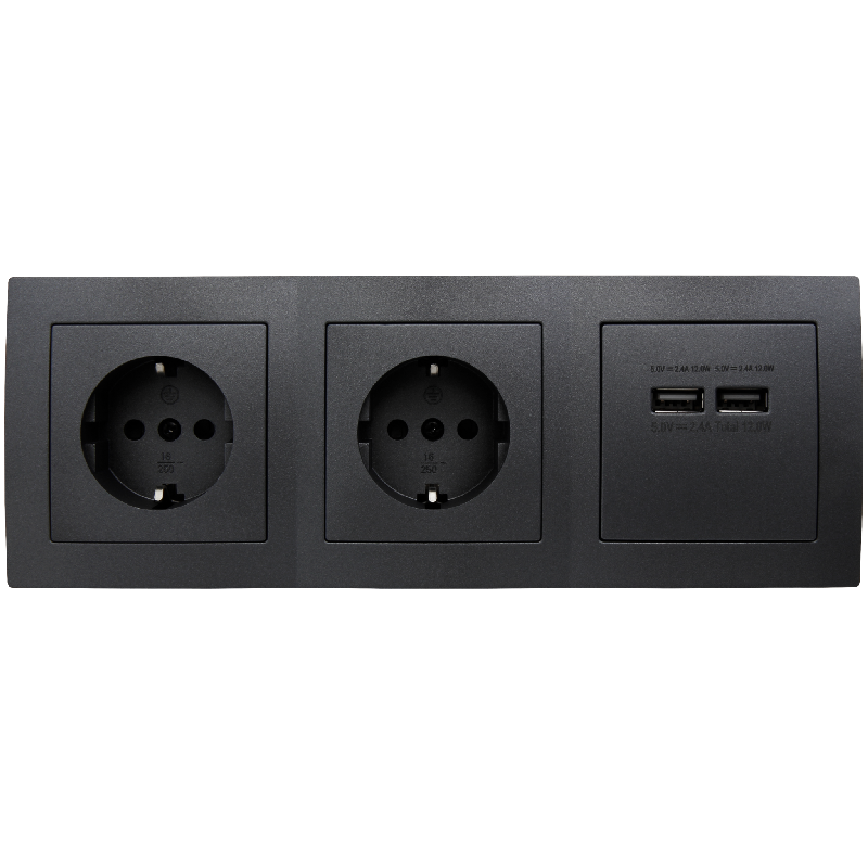 Produktinformationen "Steckdosenblock McPower Flair anthrazit, 2-fach Schutzkontakt + 2x USB"