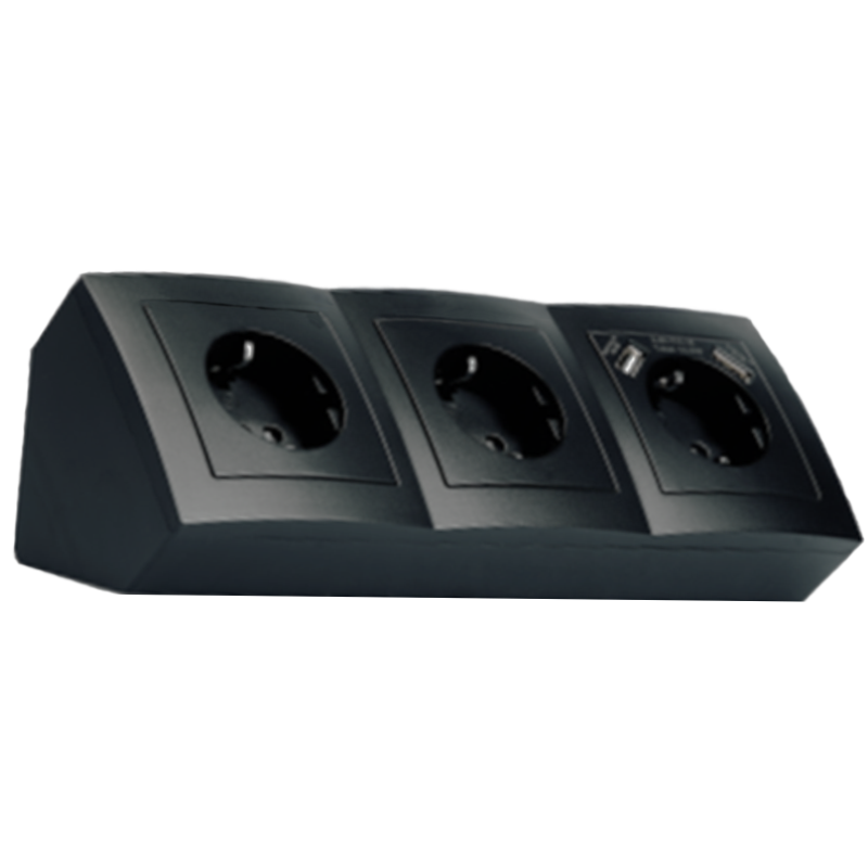 Steckdosenblock mit 2x Schutzkontakt Steckdose + 1x Schutzkontakt inkl. 2xUSB