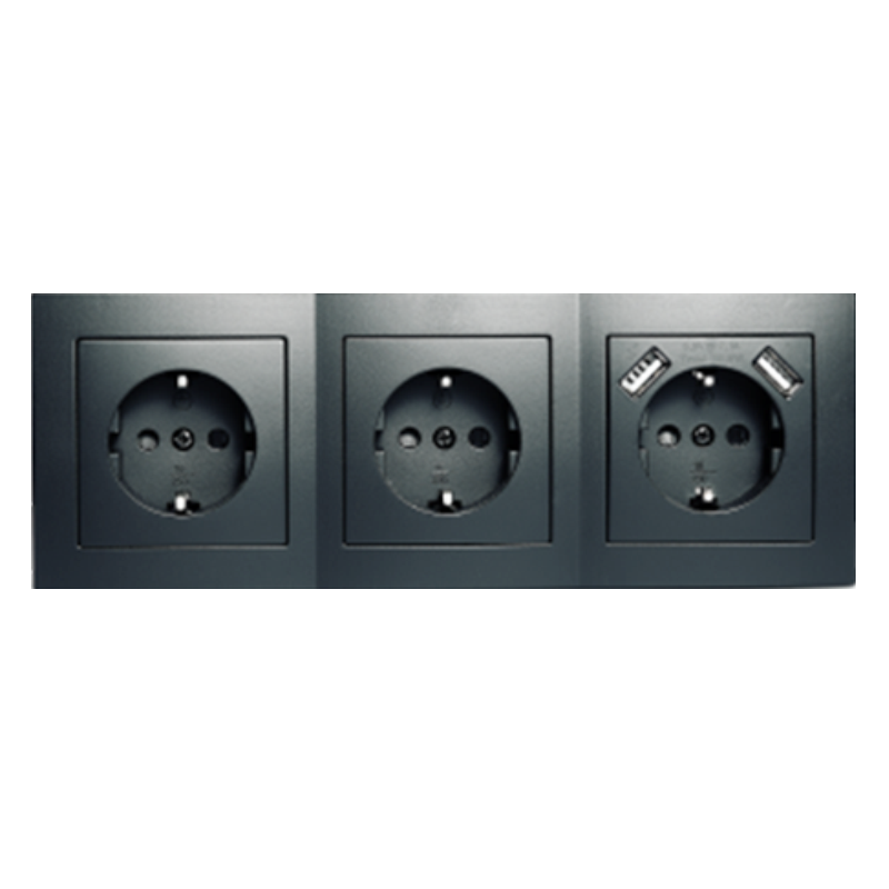 • eine Steckdosen mit Einsteckschutz / Shutter - 230V / 50Hz + 2x USB 2,1A