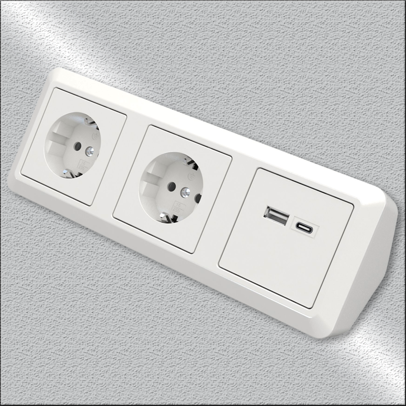 • zwei Steckdosen mit Einsteckschutz / Shutter