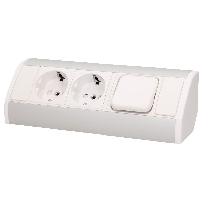 Produktinformationen "Steckdosenblock Aufbau, silber-weiß, 2fach, ein Schalter, 3680W"