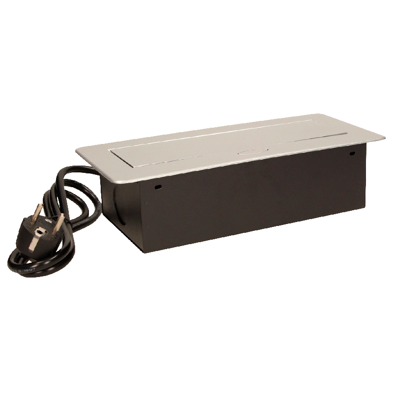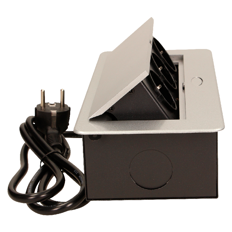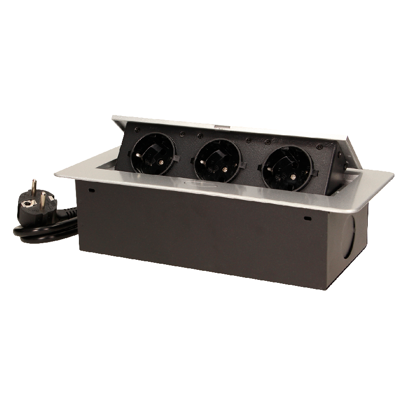 Produktinformationen "Tisch-Einbausteckdose, 3fach, silber-schwarz, 2500W, 1,5m Anschlusskabel"