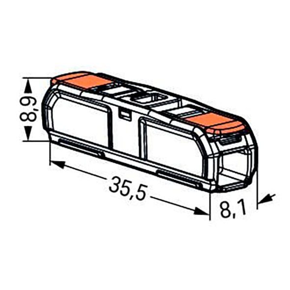 Produktinformationen "Durchgangsverbinder WAGO mit Hebel, alle Leiterarten, max. 4mm², max. 85°C"