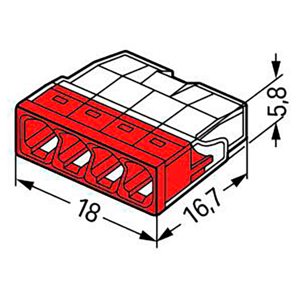 Produktinformationen "COMPACT-Verbindungsdosenklemme WAGO, eindrähtige Leiter, 4 Klemmstellen, rot"