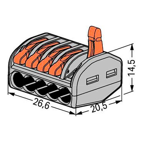 Produktinformationen "Classic-Verbindungsklemme WAGO, alle Leiterarten, 5 Klemmstellen, max 4mm²"