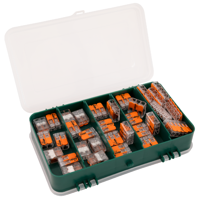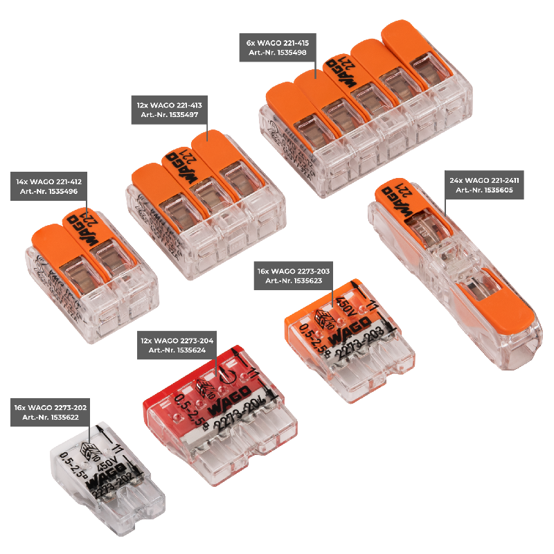 14x 221-412, 12x 221-413, 6x 221-415, 16x 2273-202, 16x 2273-203, 12x 2273-204, 24x 221-2411 • in praktischer Sortimentsbox