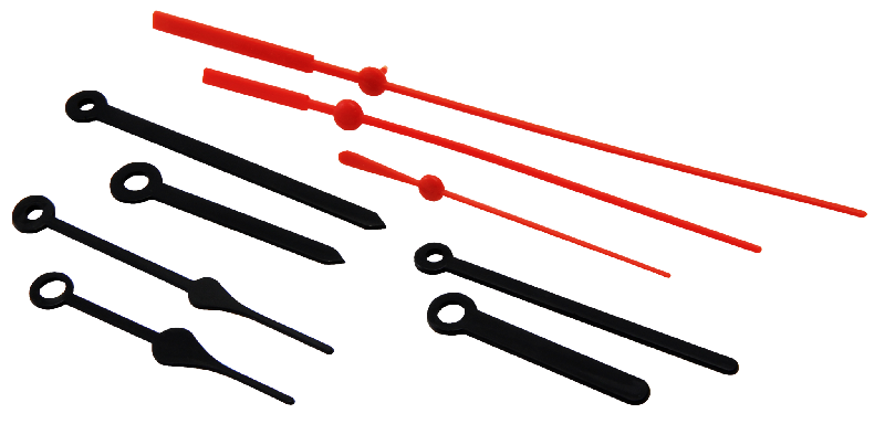 • Stunden und Minutenzeiger in schwarz, Sekundenzeiger in rot