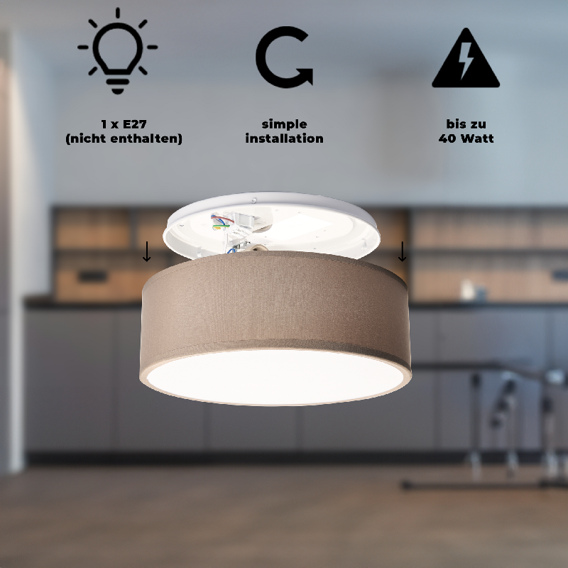 Weiterführende Links zu "Deckenleuchte EINLICHT Fabric für 1x E27, Ø30cm, Taupe, Stoffschrim"