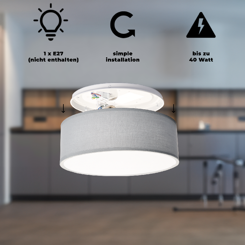 Weiterführende Links zu "Deckenleuchte EINLICHT Fabric für 1x E27, Ø30cm, Blaugrau, Stoffschrim"