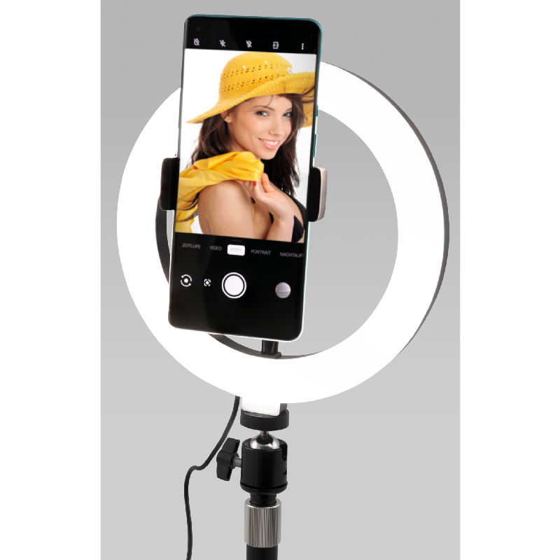 Produktinformationen "LED Ringleuchte für Smartphone, Ø20 cm, 3 Lichtfarben,"