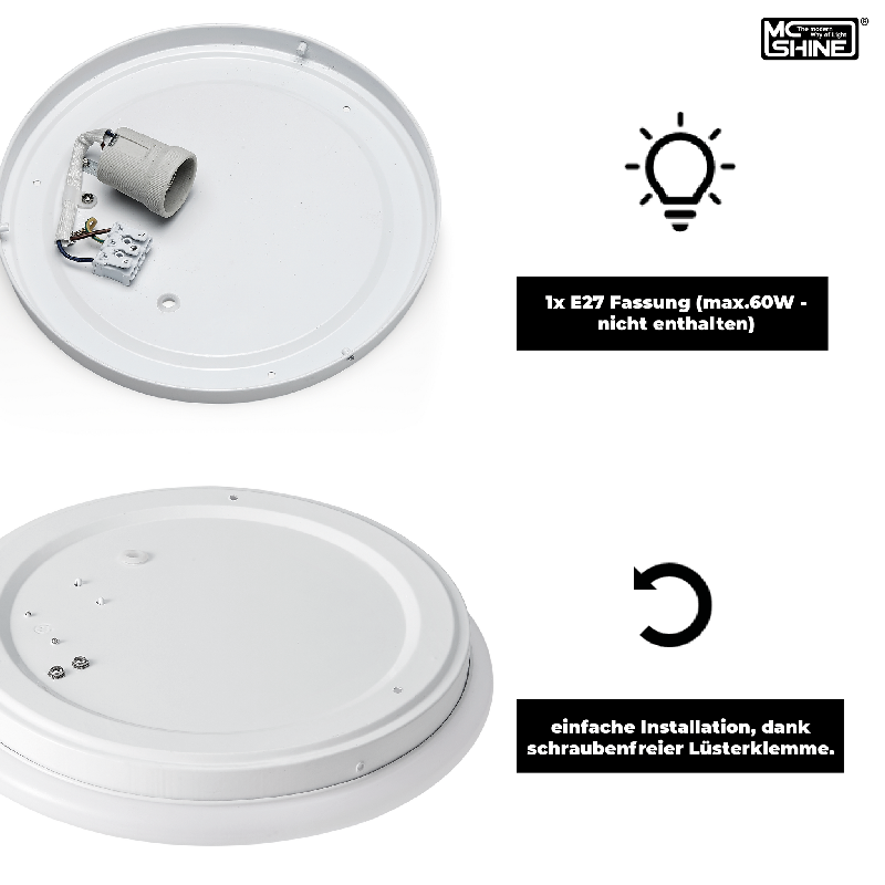 • 1x E27 Fassung (max 60W - nicht enthalten)