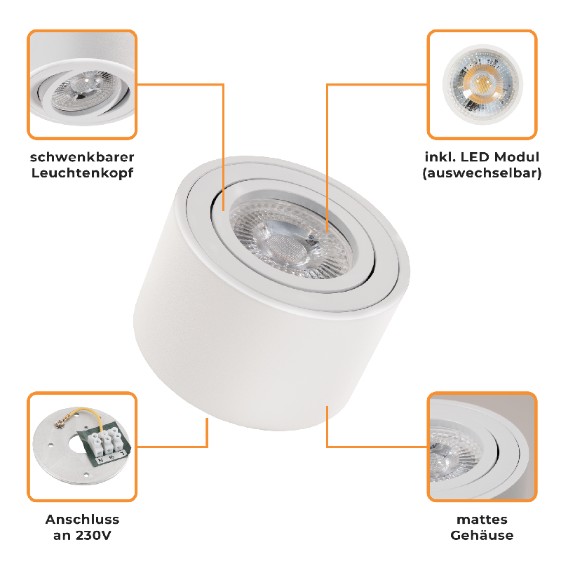Weiterführende Links zu "LED-Aufbauleuchte McShine, 5W, 400Lumen, 3000K, ØxH 80x50mm"